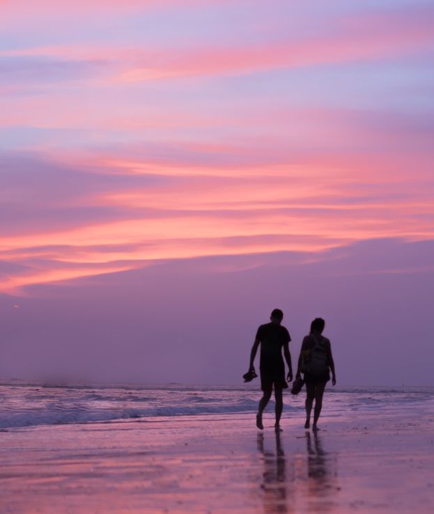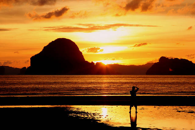 如果人物在景中,最好是能和景物形成强烈的反差,在雪山、海边都非常适合穿着一些色彩鲜艳的服饰拍摄。