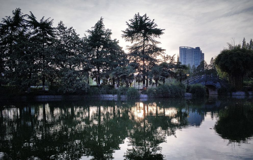 在城市里,可以利用雨后地面的水潭、建筑物前面的水池,或者建筑物本身的玻璃镜面来拍摄出倒影/倒映的画面。