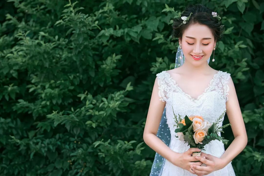 脸胖的新娘多拍侧面特写,嘴巴微张更显瘦。