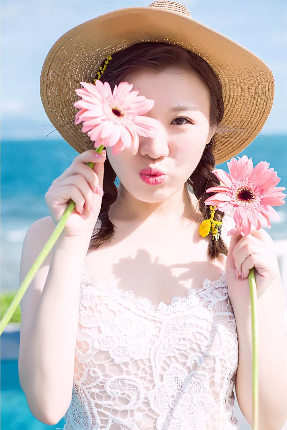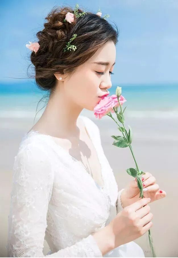 手捧花等唯美道具可举起放在脸颊边,凸显温柔气质。
