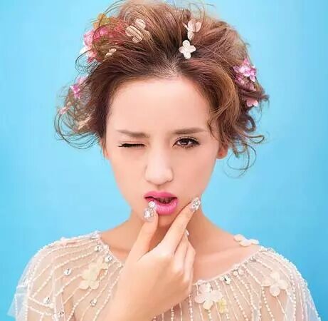 新娘除了头纱婚纱外,还应配戴一些花饰或者珠饰。如颈间戴项链,新娘在穿着婚纱服特别是袒胸式婚纱服时特别需要,又如新娘头饰除了头纱外,配搭鲜花或珠饰更加楚楚动人。此外还有耳环、戒子、手镯等。拍摄婚纱照时捧花是必不可少,迎接新娘时,新郎手中的花束也是必不可少。