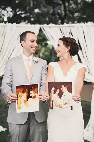 14、你还可以拿出父母当年结婚时的照片,来一张幸福的合影。