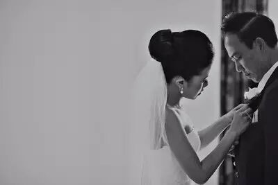 15、我为你整理胸前的胸花,你为我扶起散落的头发,这就是我们幸福的小日子。