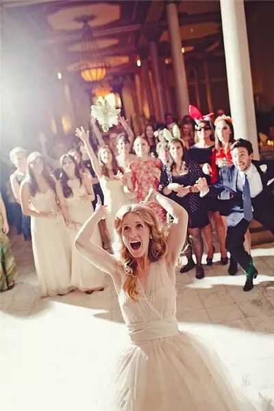 12、结婚仪式完成后,新娘将捧花抛给在场的未婚女性宾客,将幸福传递给她们,而接到捧花的女孩也会因为幸运降临而兴奋不已,下一场幸福或许就要到来!