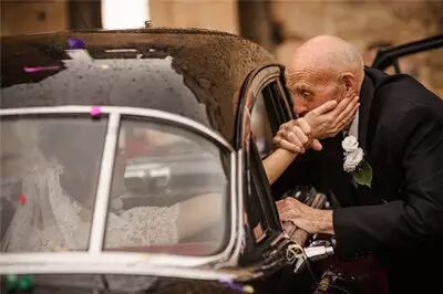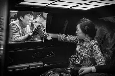 4、新娘坐上婚车,车外的父母泪眼朦胧,车内的新娘梨花带雨,这是不舍,也是高兴。