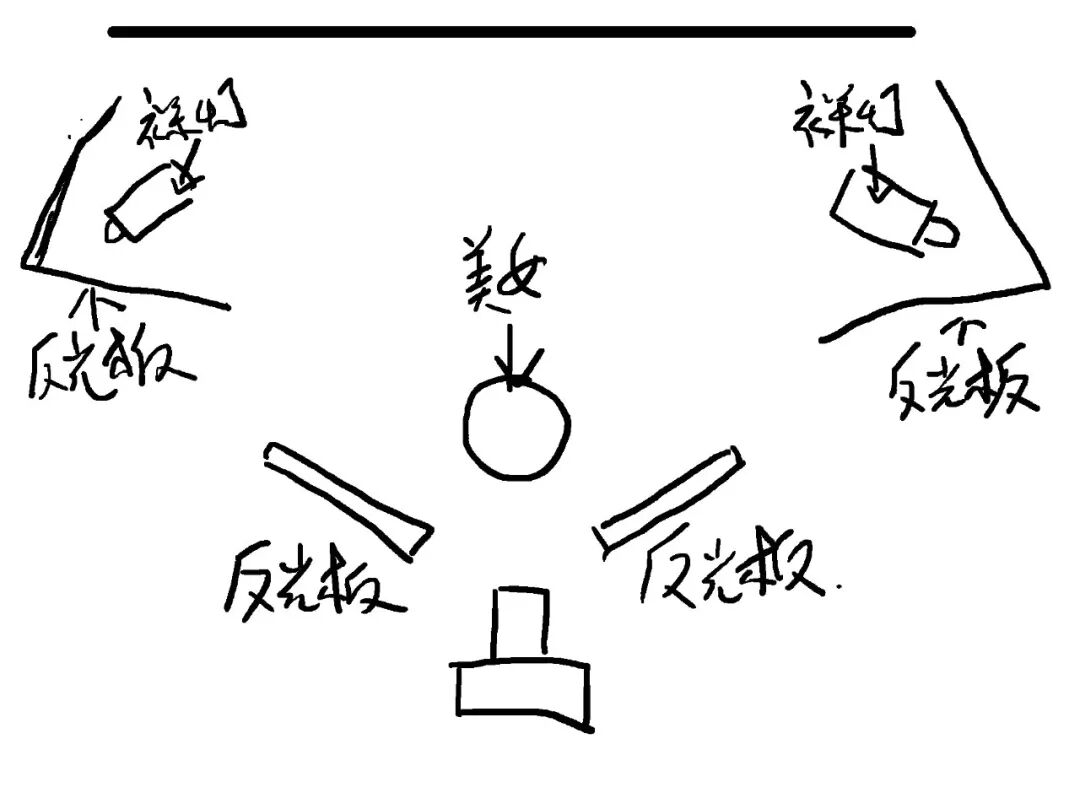 同时,背景的灰度也可以保证,同时在人物前下方设置一块反光板,让光比达到1:2的柔和比值。