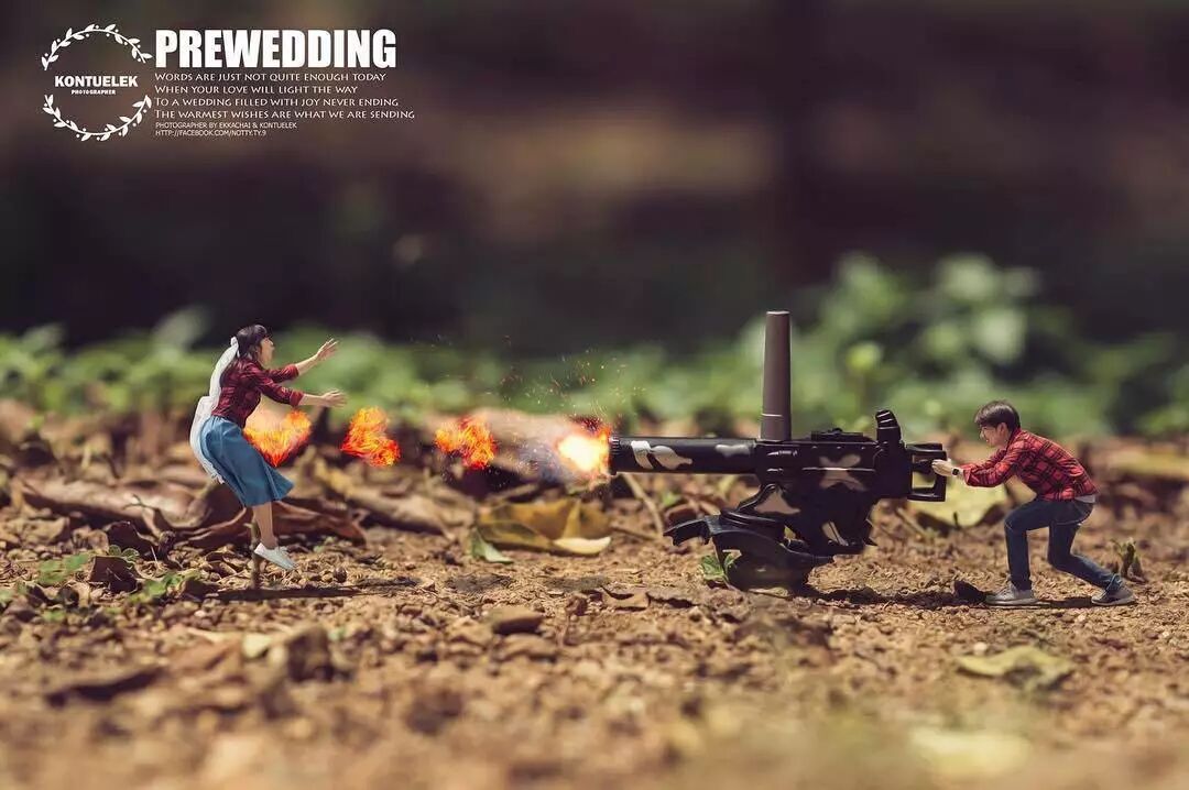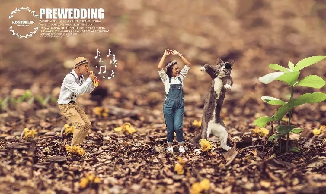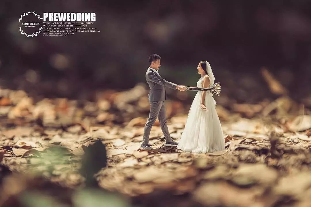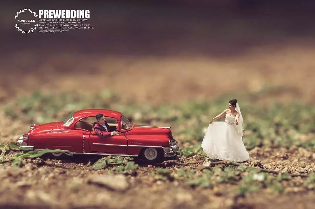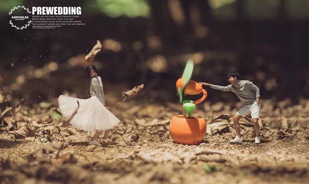 不仅仅是P图调色,更加是加入了微观场景。。。其实也不是微观场景,就是普通的微距拍摄的图片再加上后期合成新娘新郎进去,忽然间,整个世界都变得更加fun了!