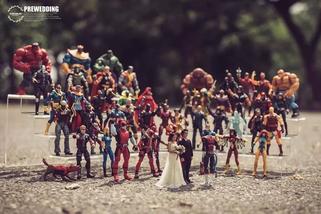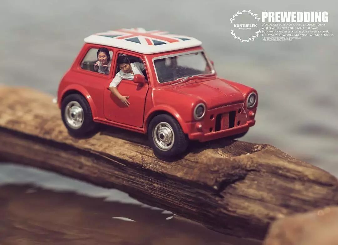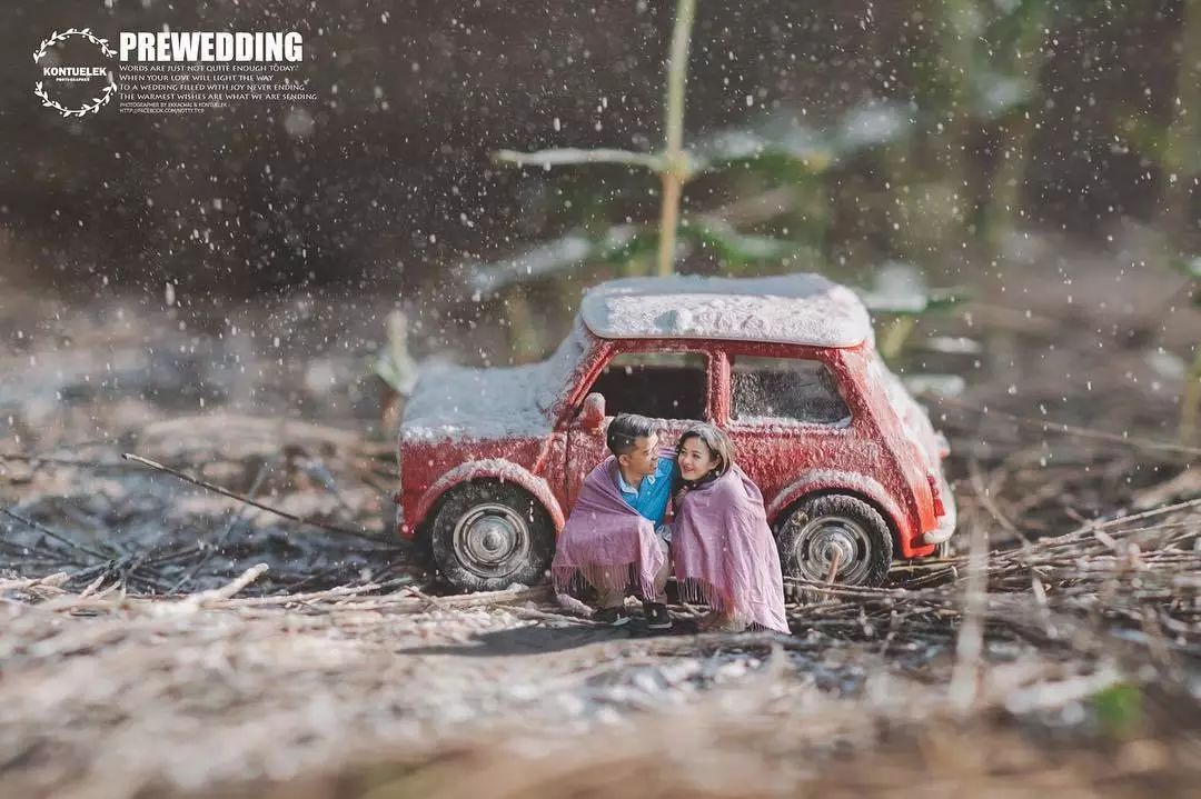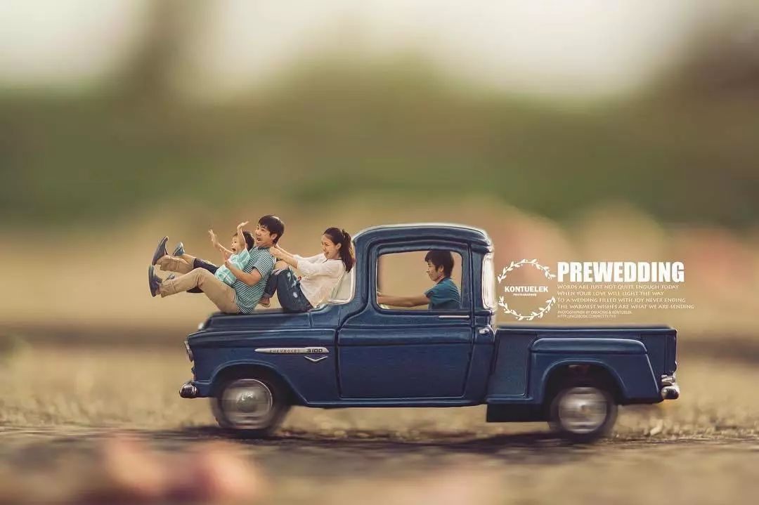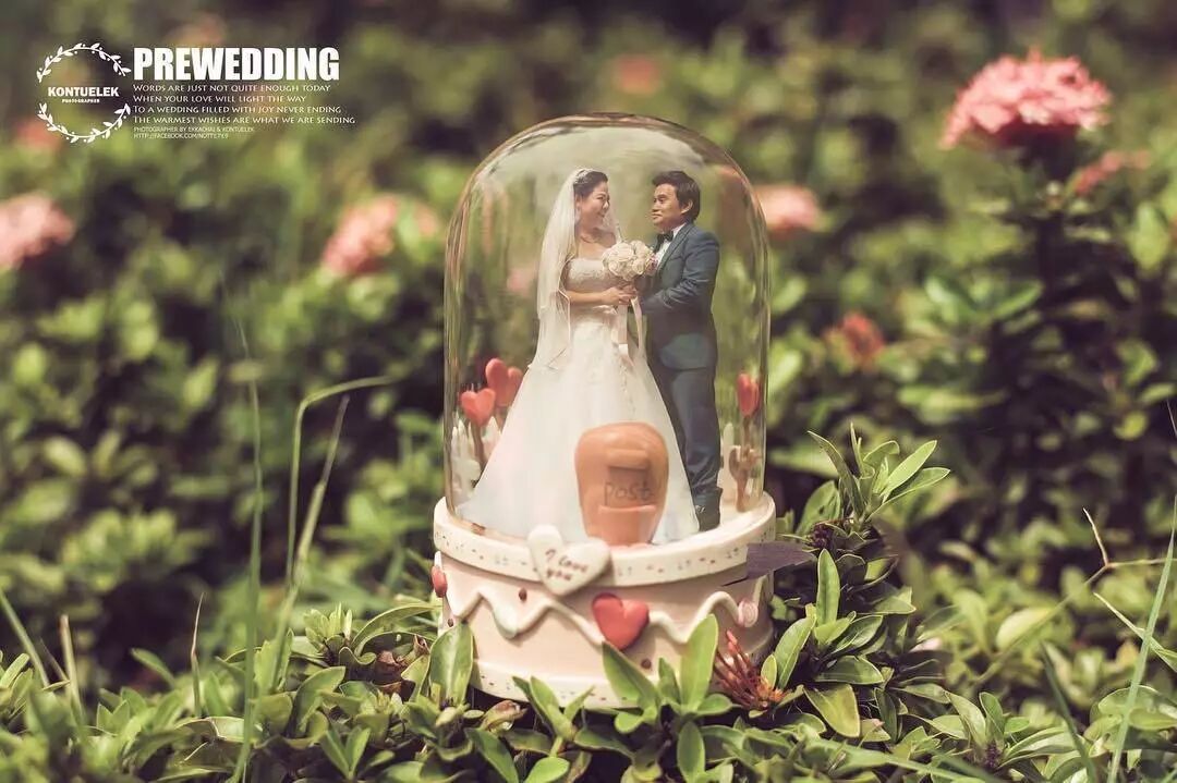 不仅仅是P图调色,更加是加入了微观场景。。。其实也不是微观场景,就是普通的微距拍摄的图片再加上后期合成新娘新郎进去,忽然间,整个世界都变得更加fun了!