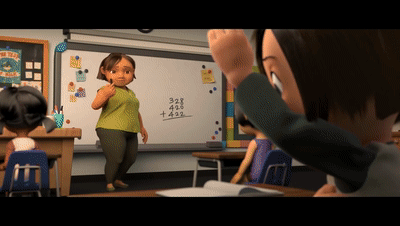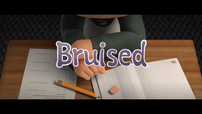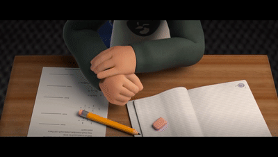 女孩小心翼翼地伸出没受伤的左手拿笔