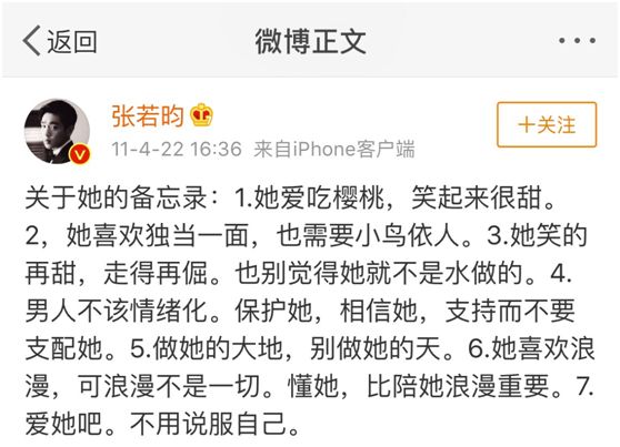 就像张若昀在备忘录里写的,要做她的大地,保护她,相信她。