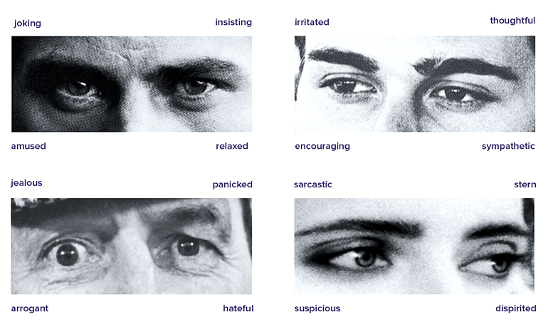 参与者查看36张黑白照片,然后确定四个形容词中的哪一个最能描述眼睛所表达的情绪。