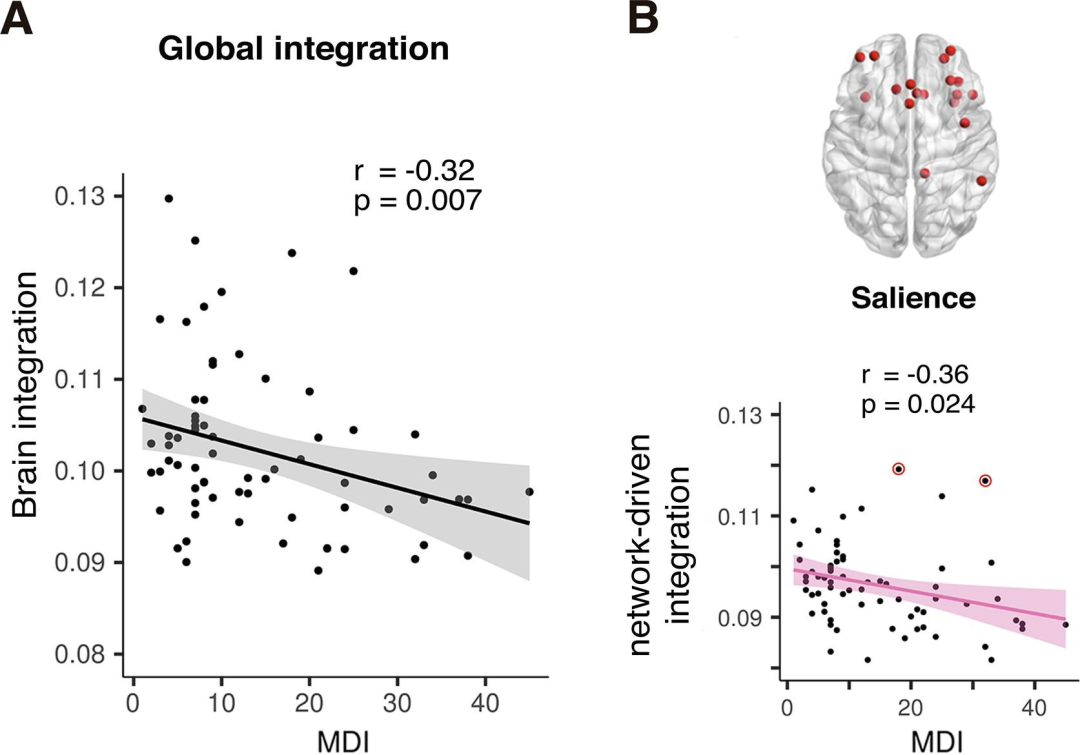 结果发现,随着时间的推移,当抑郁症状越严重时,大脑的信息整合能力越差。