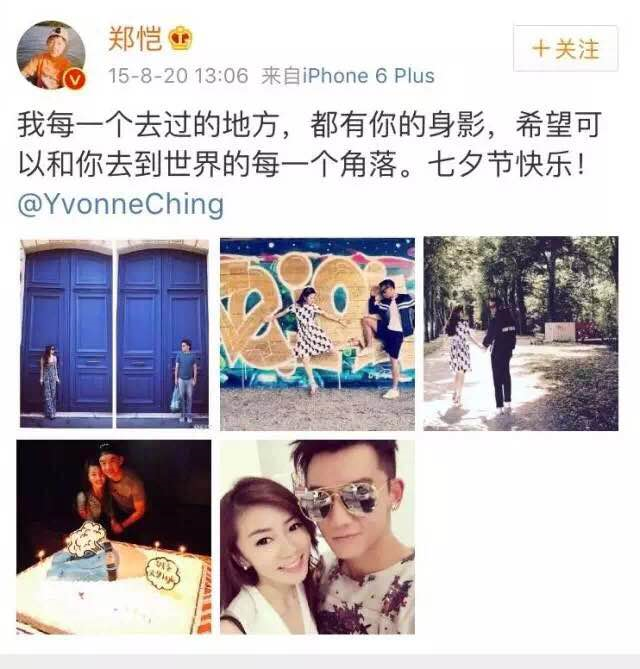 郑恺和前女友程晓玥在2015年公开恋情后,便终于摆脱了“备胎男”和“夜店王子”的人设,开始带着女友参加各种节目,大秀恩爱。