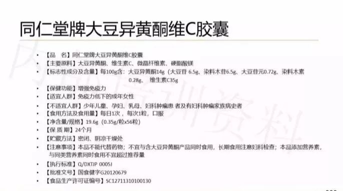 主要原料:大豆异黄酮、维C、微晶纤维素等;