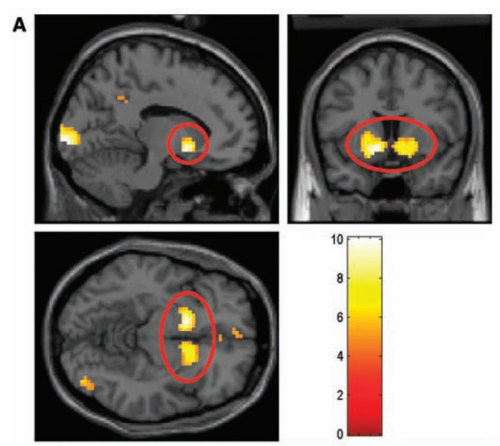 在同样的条件下,当人们通过社会比较后,发现自己得到的好处比别人多时,左腹侧纹状体会被更大激活(这个大脑区域被称为快乐中枢,通常与奖赏情绪有关,例如当人们中奖、获得金钱奖励、或被表扬时,这个区域会被激活)。