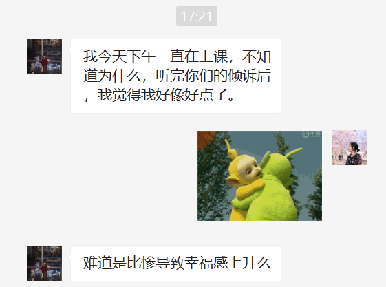 但那天不知道为何,大家竟纷纷开始诉苦,群里画风变成了 “比惨”。刚毕业的人有毕业的苦、结婚的人有家庭的累……
