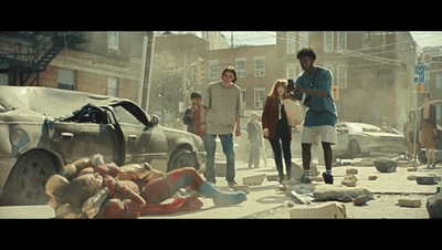 一片混乱中,演员娜塔莎·雷昂走了过来,对两位 “超级英雄” 说:“Oh Man!这就是你们拯救世界的方式吗?”