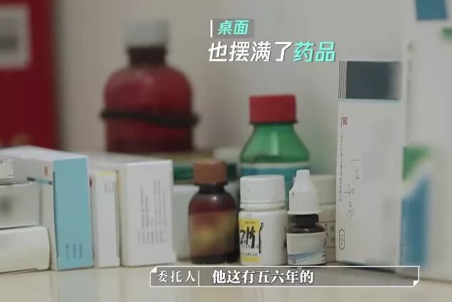 由于老奶奶有心脏病、高血压、高血糖,所以家里有一台呼吸机,桌面上也摆满了各种药品。