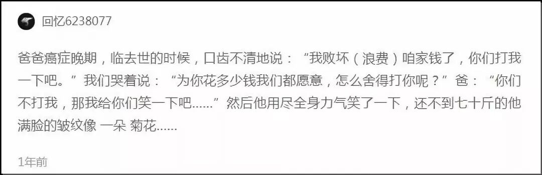在去世前,父亲口齿不清地说:“我败坏(浪费)咱家钱了,你们打我一下吧。”