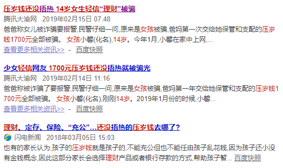 重庆14岁女生轻信“理财”1700元压岁钱还没捂热就被骗了个精光。