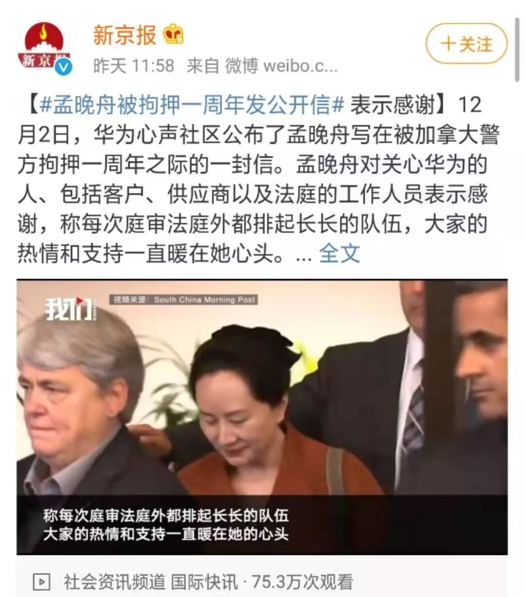 前几天,在孟晚舟被拘押一周年之际,华为心声社区发布了一封她的公开信,娓娓道来一年的过往,让无数网友动容。