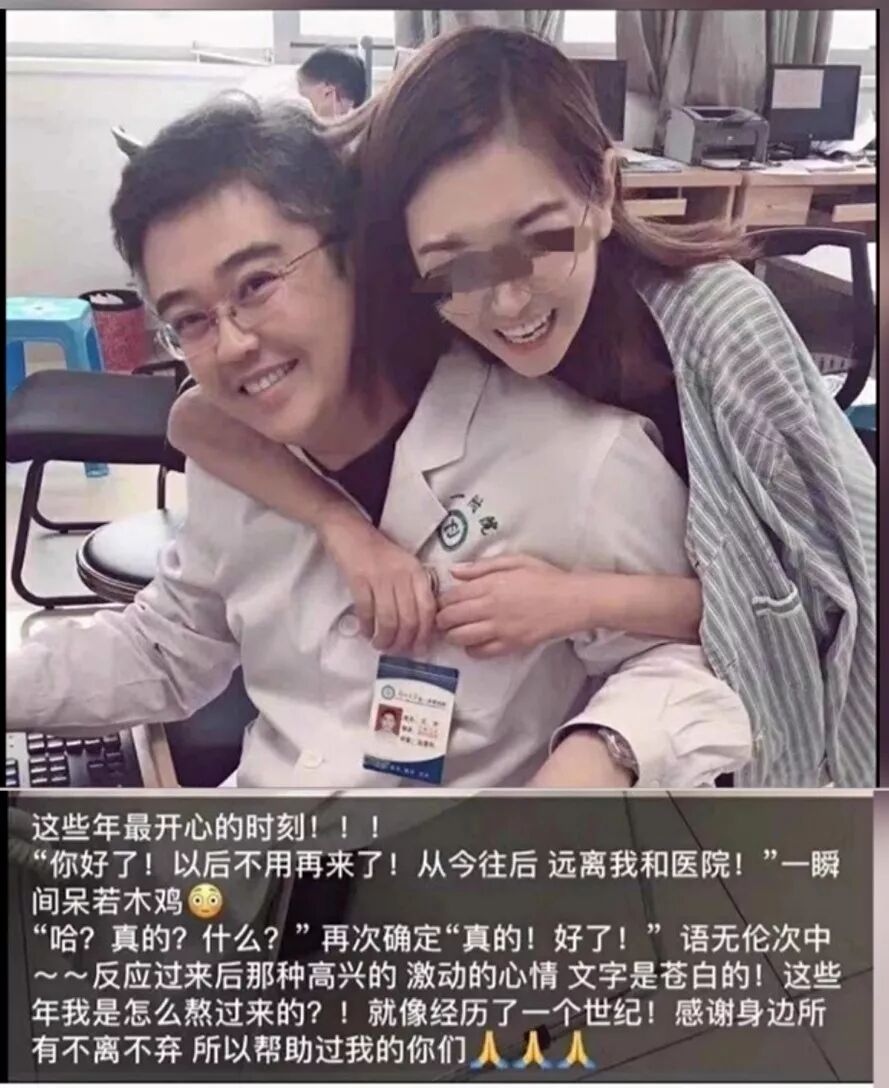 再比如,那个康复了的白血病姑娘,在被宣布治愈的那一刻,兴奋激动地拥抱医生。