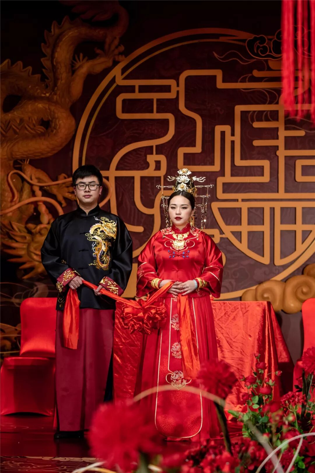 因为从小就对中式婚礼有一种向往,白马迎娶,红帘遮容,八抬大轿,十里红妆,踹轿门,跨火盆,步摇声声拜高堂。礼成洞房,每一步都是庄重的仪式。
