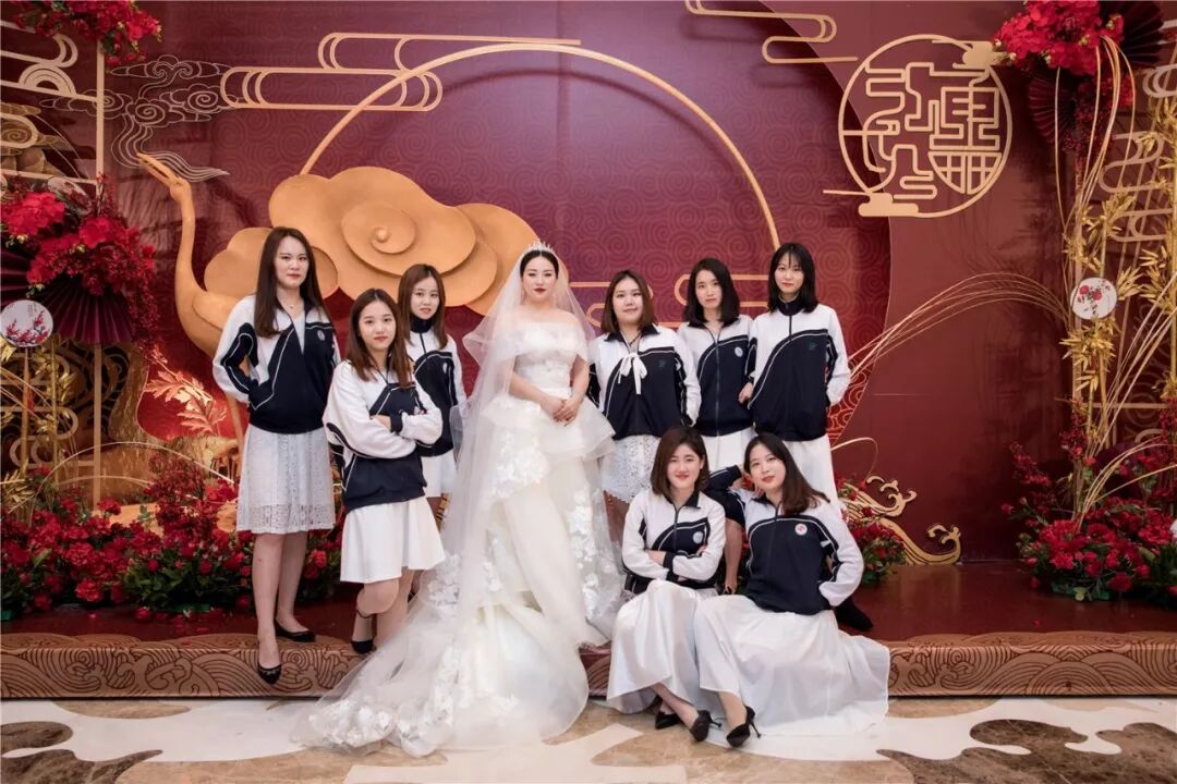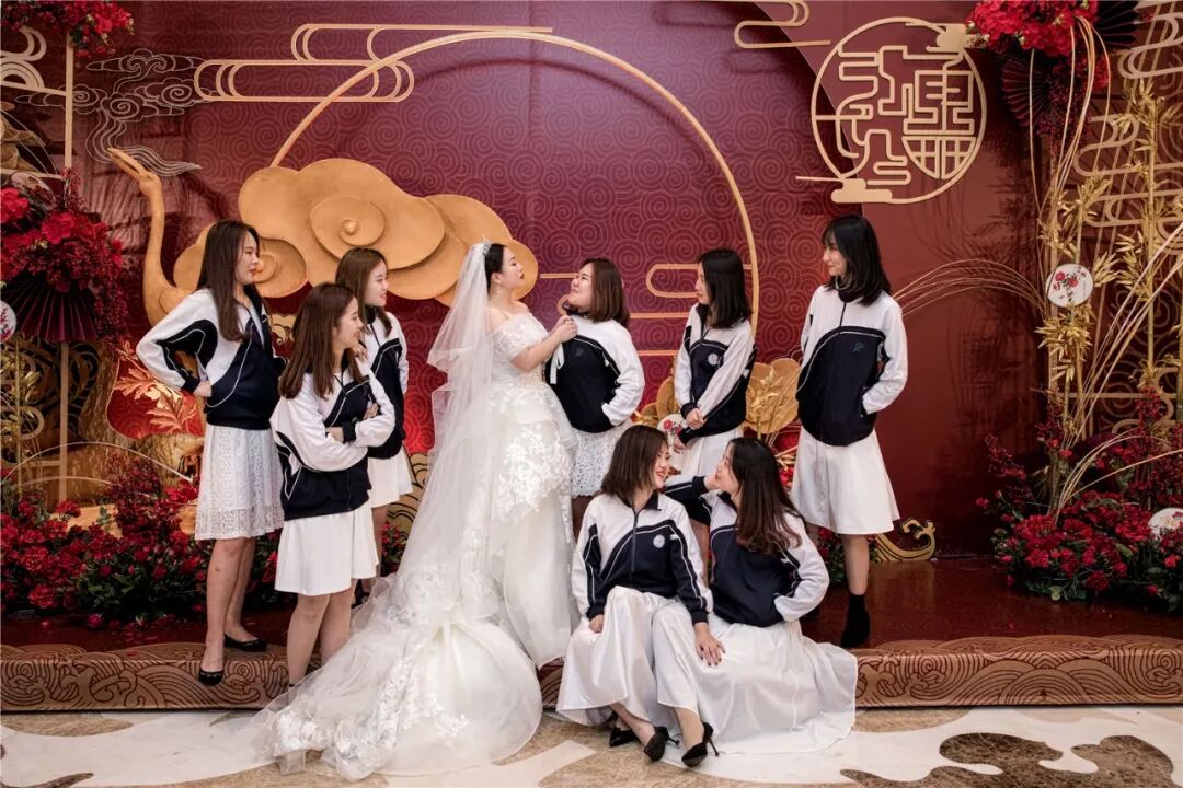 而我的姐妹们都是从读书时代一起走过来的,穿校服更能激起彼此的青春回忆,于是就把晨袍改成了校服。