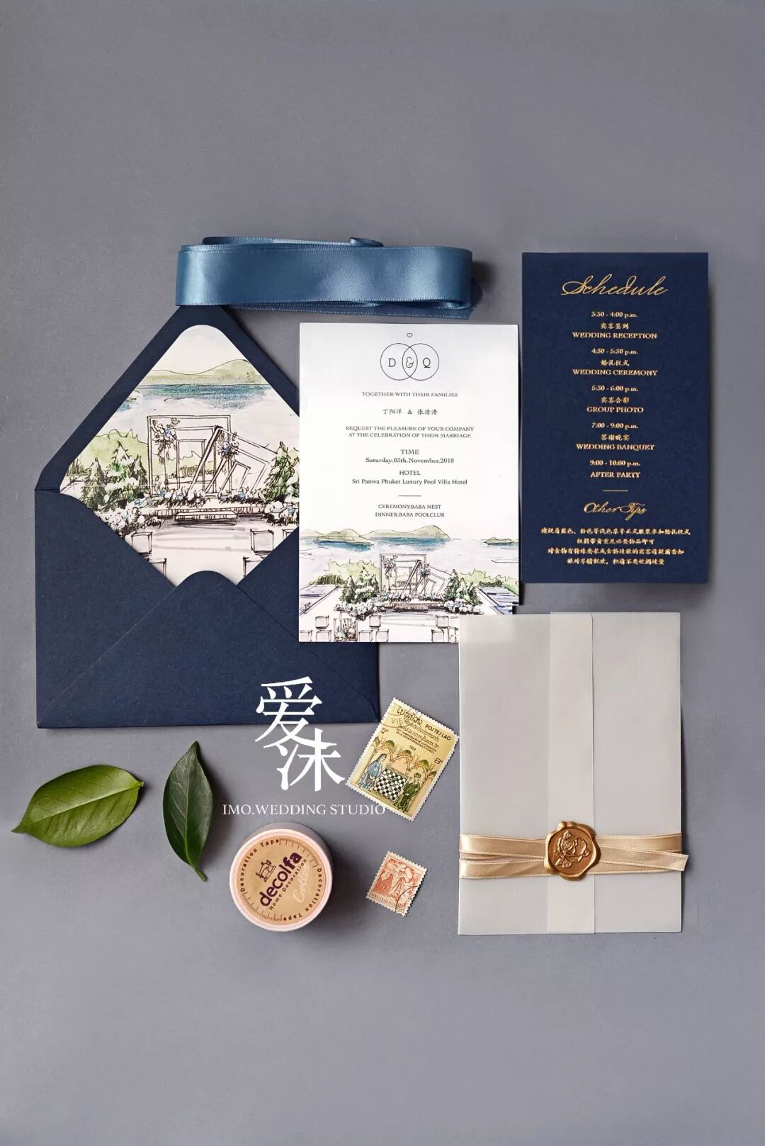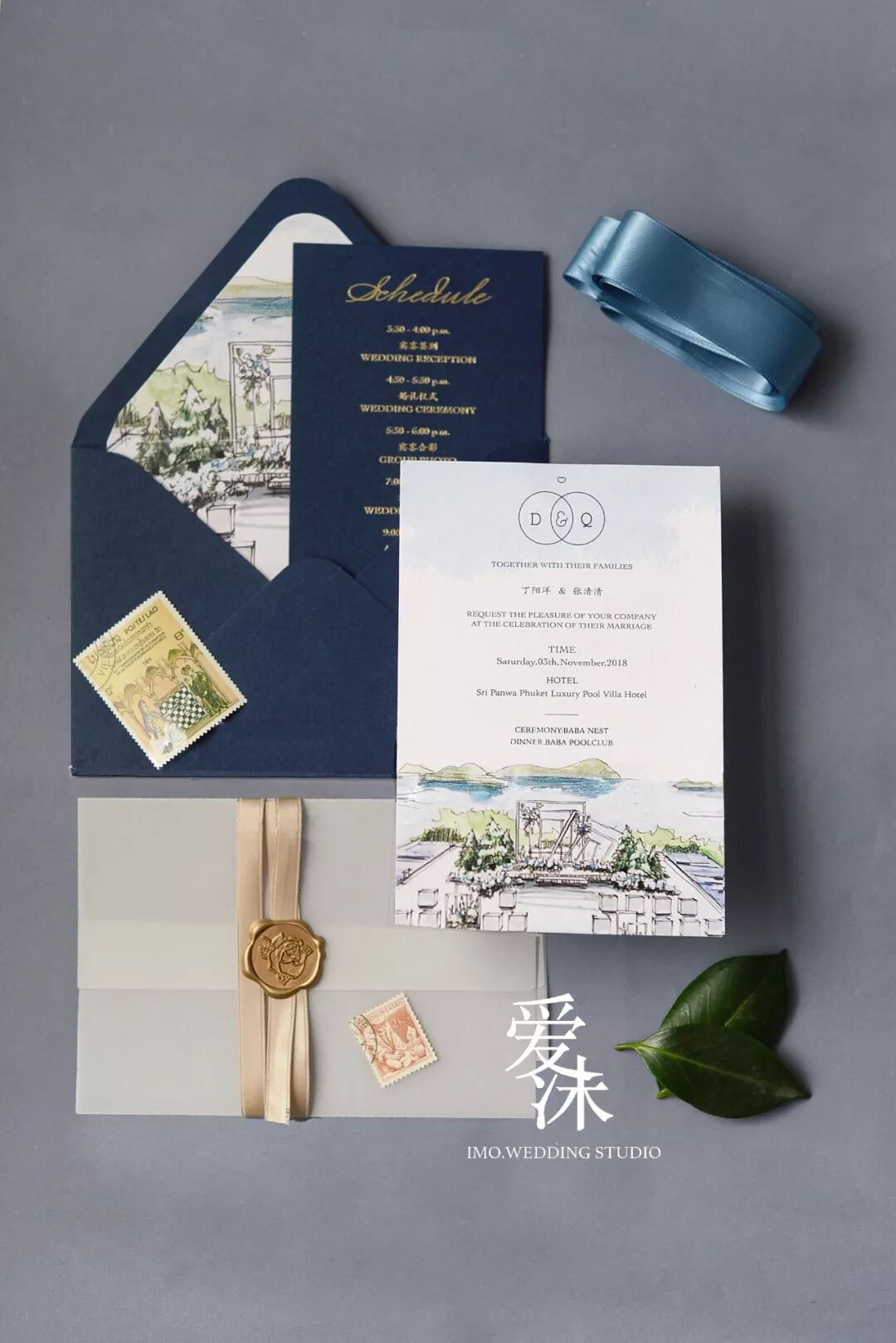 请帖的正面是我们主仪式的手绘图,同时手绘图的元素也出现在信封内页,是我特别喜欢的部分。