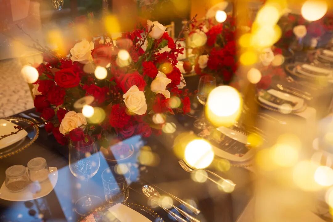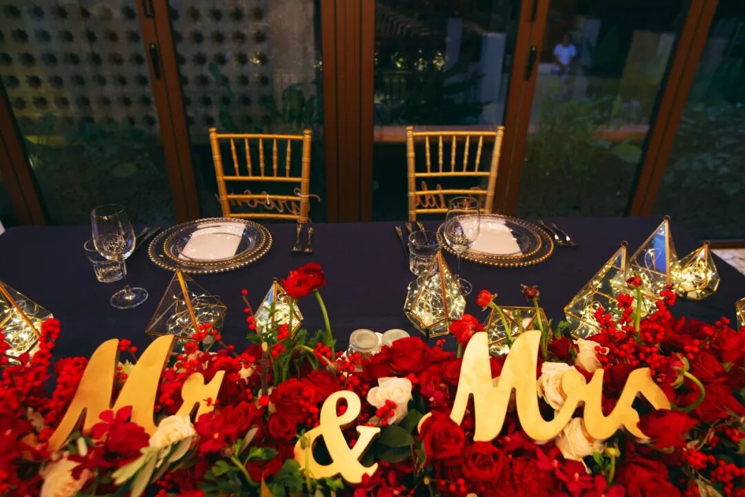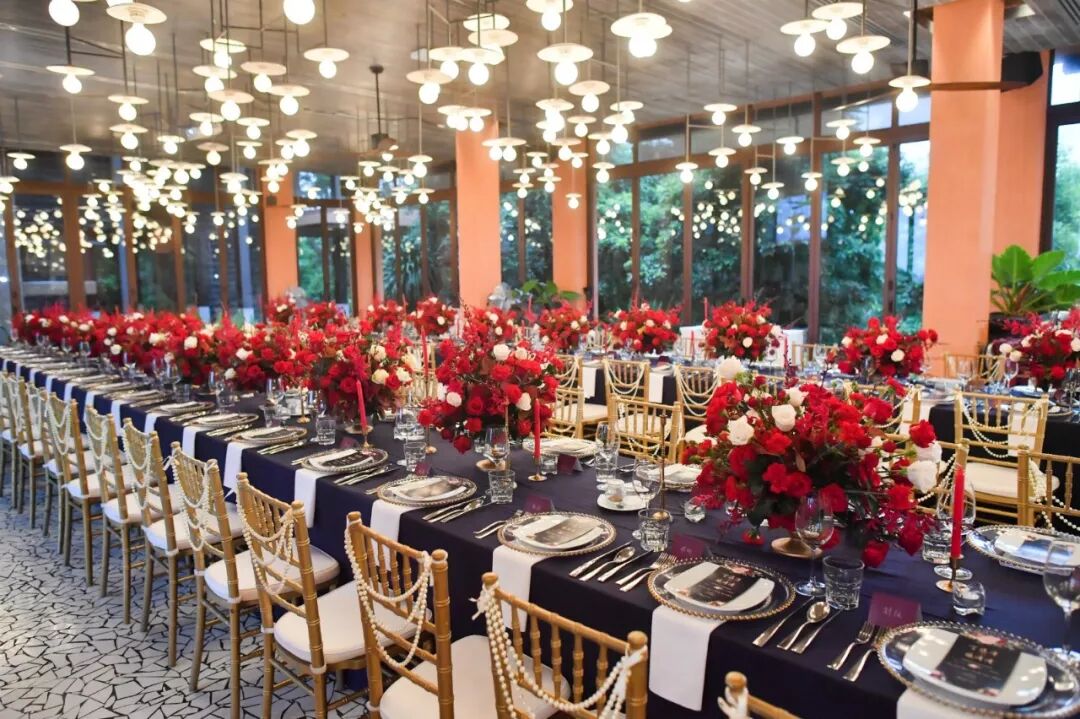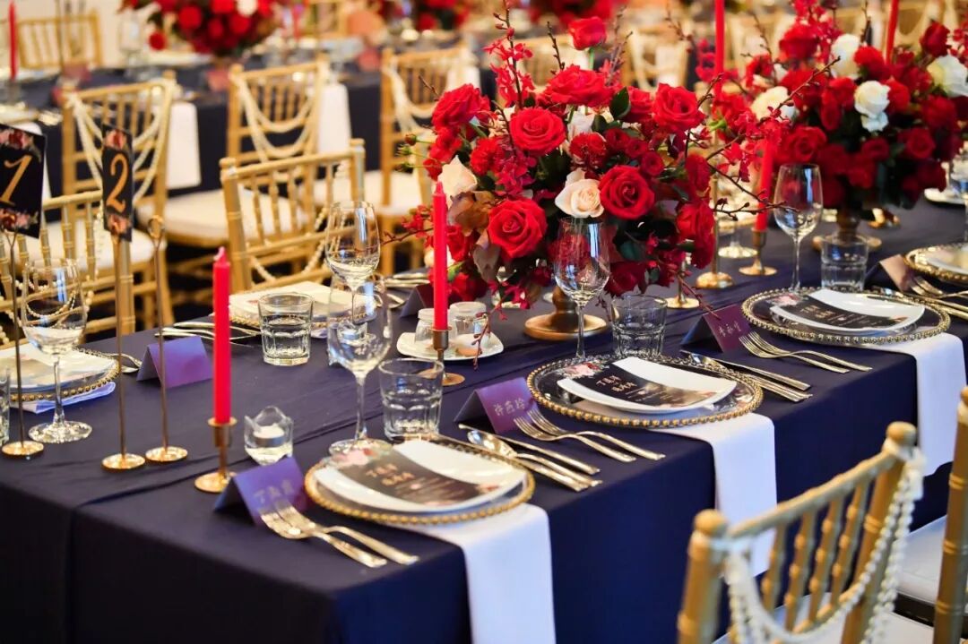 感恩晚宴选择的是我喜欢的色系:深蓝+红,金色来点缀,感觉整个晚宴的布置都暖暖的,精致中透着几分典雅与浪漫。