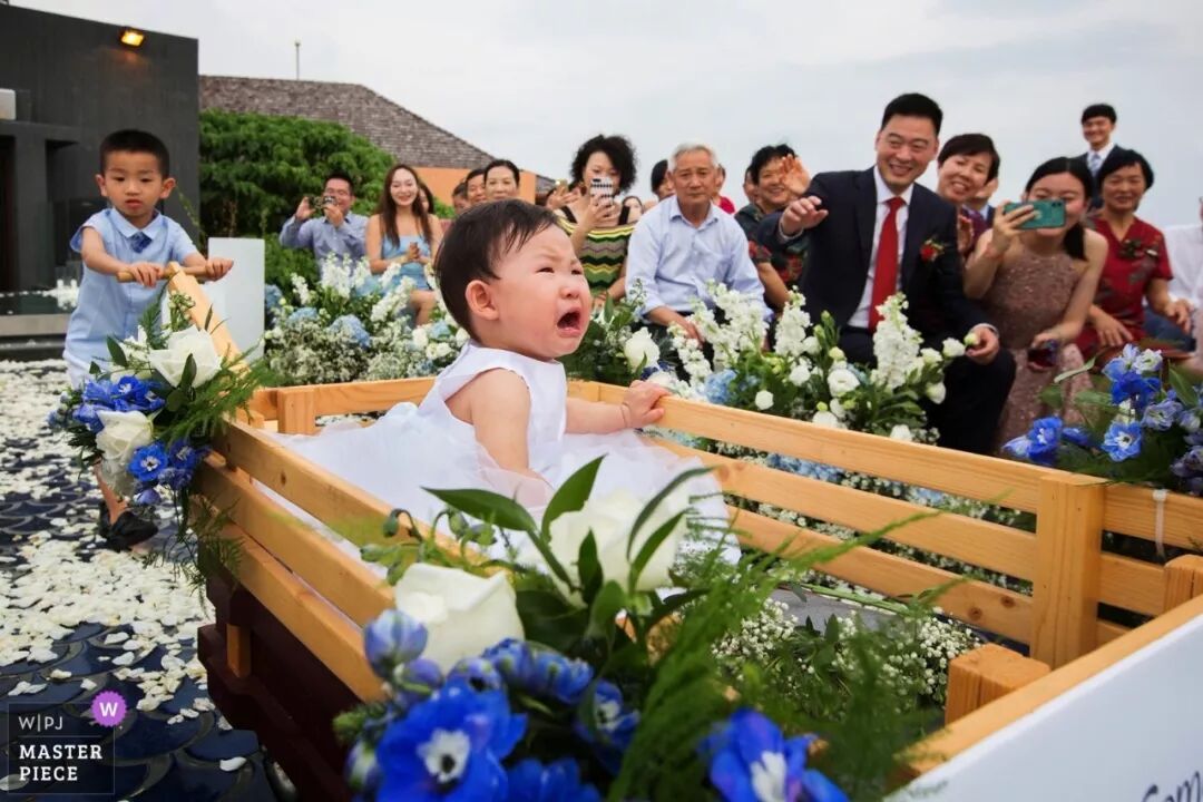 主仪式的司仪是一个很可爱的英国老爷爷。而我的女儿是我的Flower Girl,因为她还不会走路,所以就定制了一辆wagon(这个idea来自Pinterest)。