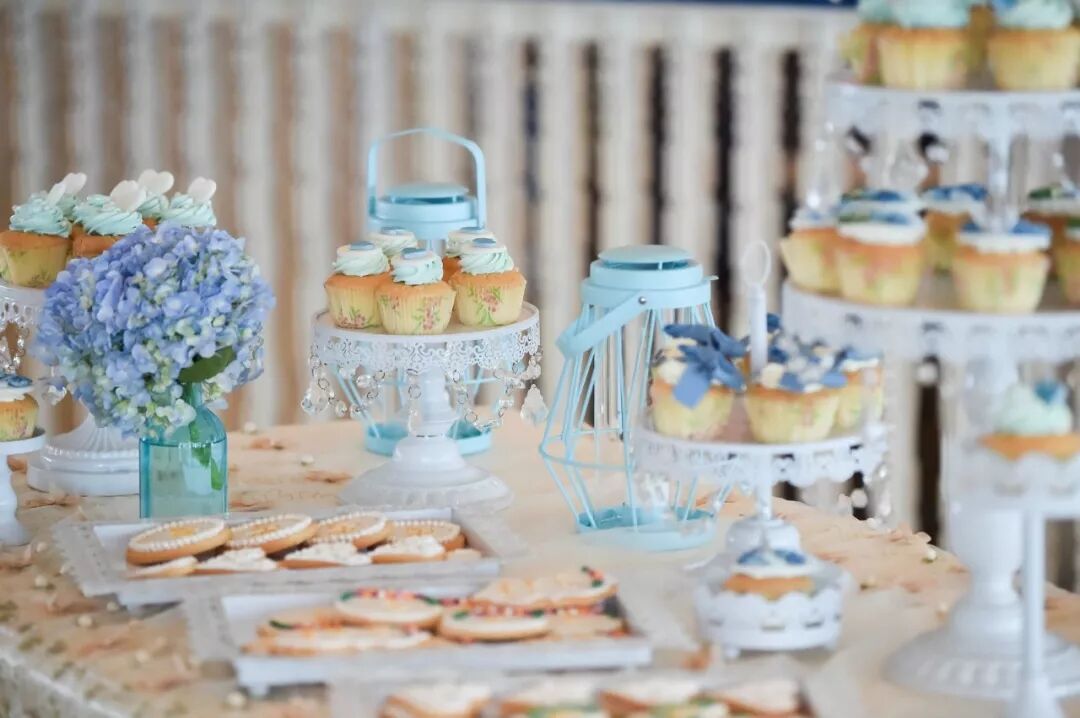 甜品区的布置呼应了整场婚礼的色调,也是简单而小清新。
