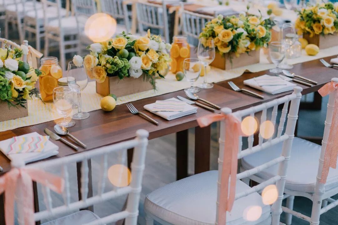 关于布置,欢迎晚宴选择了我们共同喜欢的色系:柠檬黄,清新中带着点明媚。