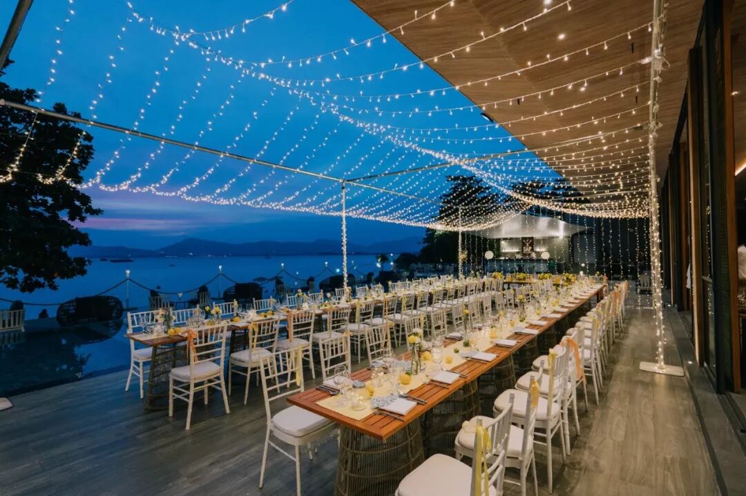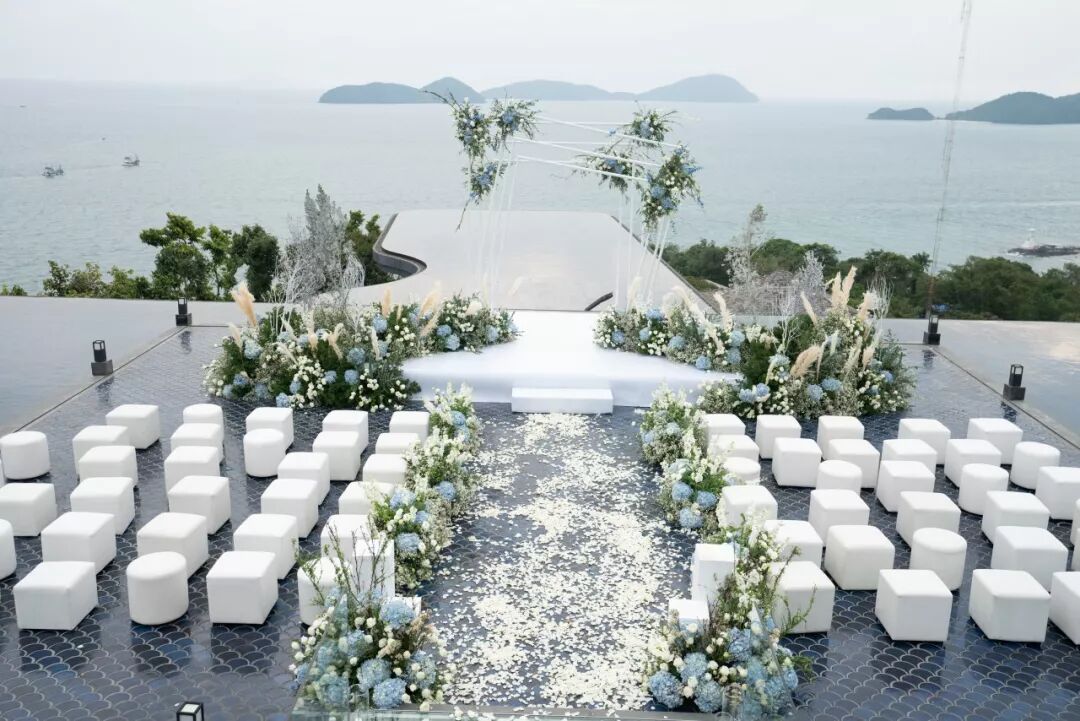 海岛婚礼的另一层执念是主仪式场地一定要是水台。可以360度俯瞰安达曼海的斯攀瓦酒店的Baba Nest自然成了最佳选择。(Baba Nest一般要提前一年以上预定,而且需要住满15个酒店房间及对晚宴有最低消费要求)