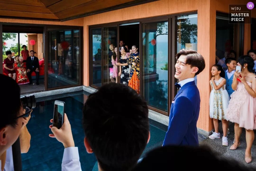 而新郎果然如预想中的一样没有感动哭,而是笑到岔气。