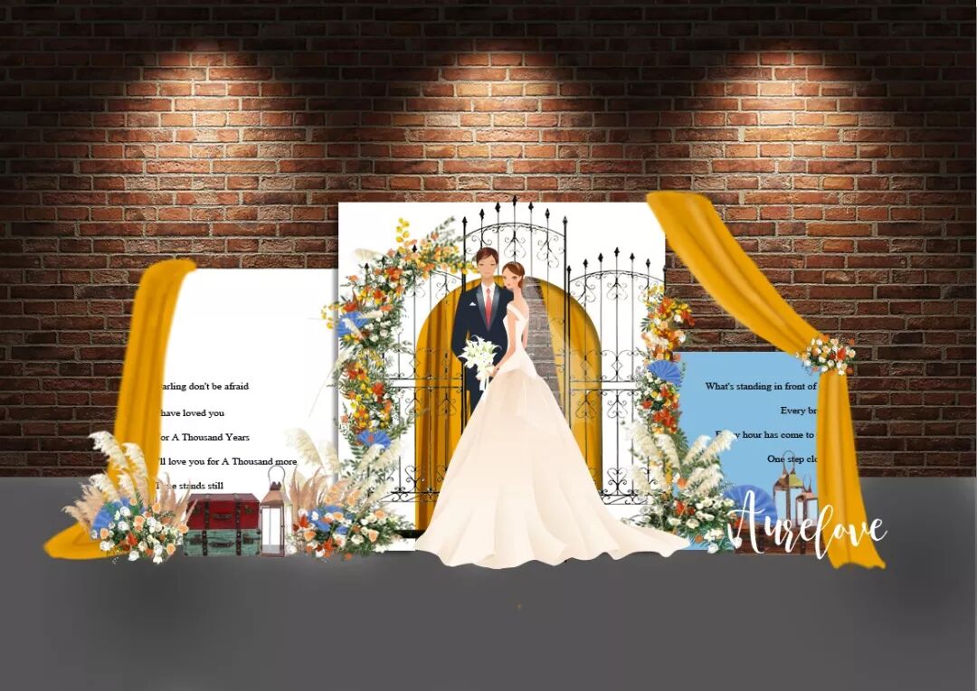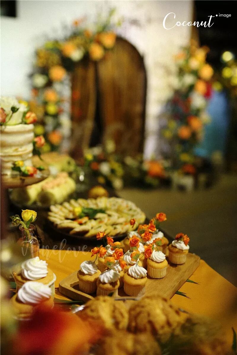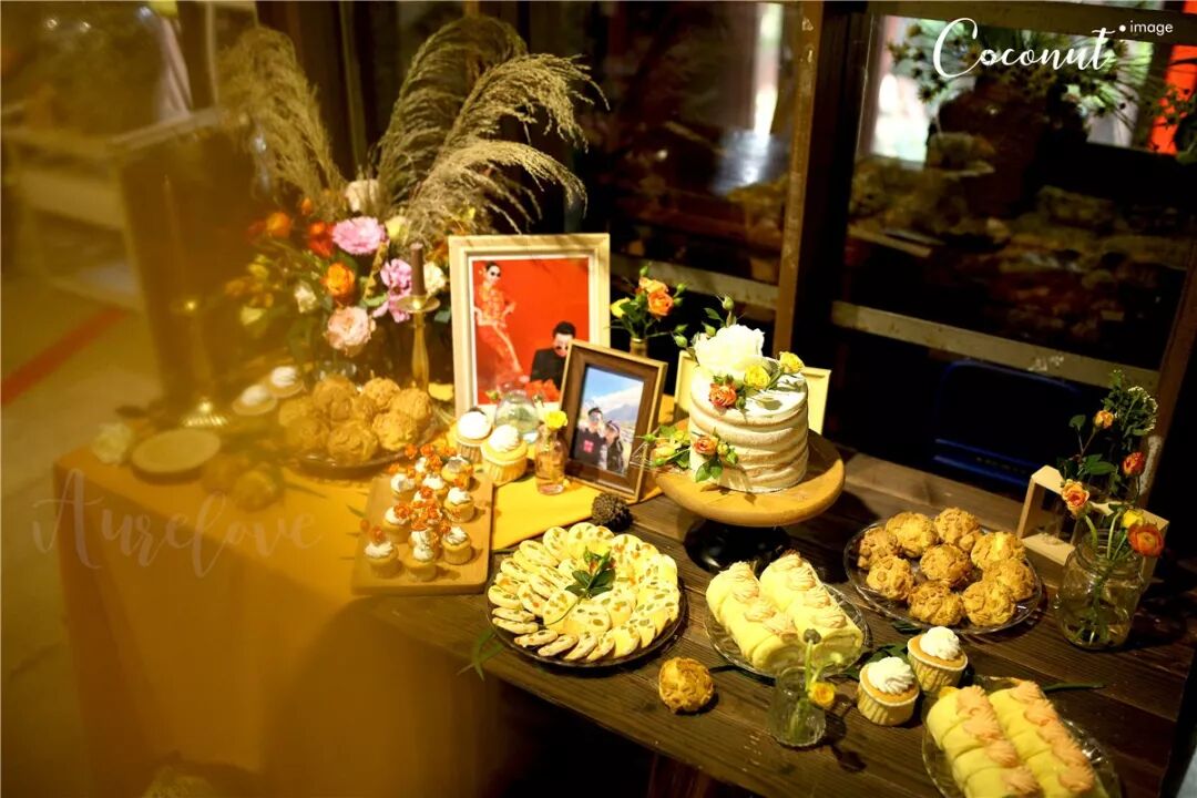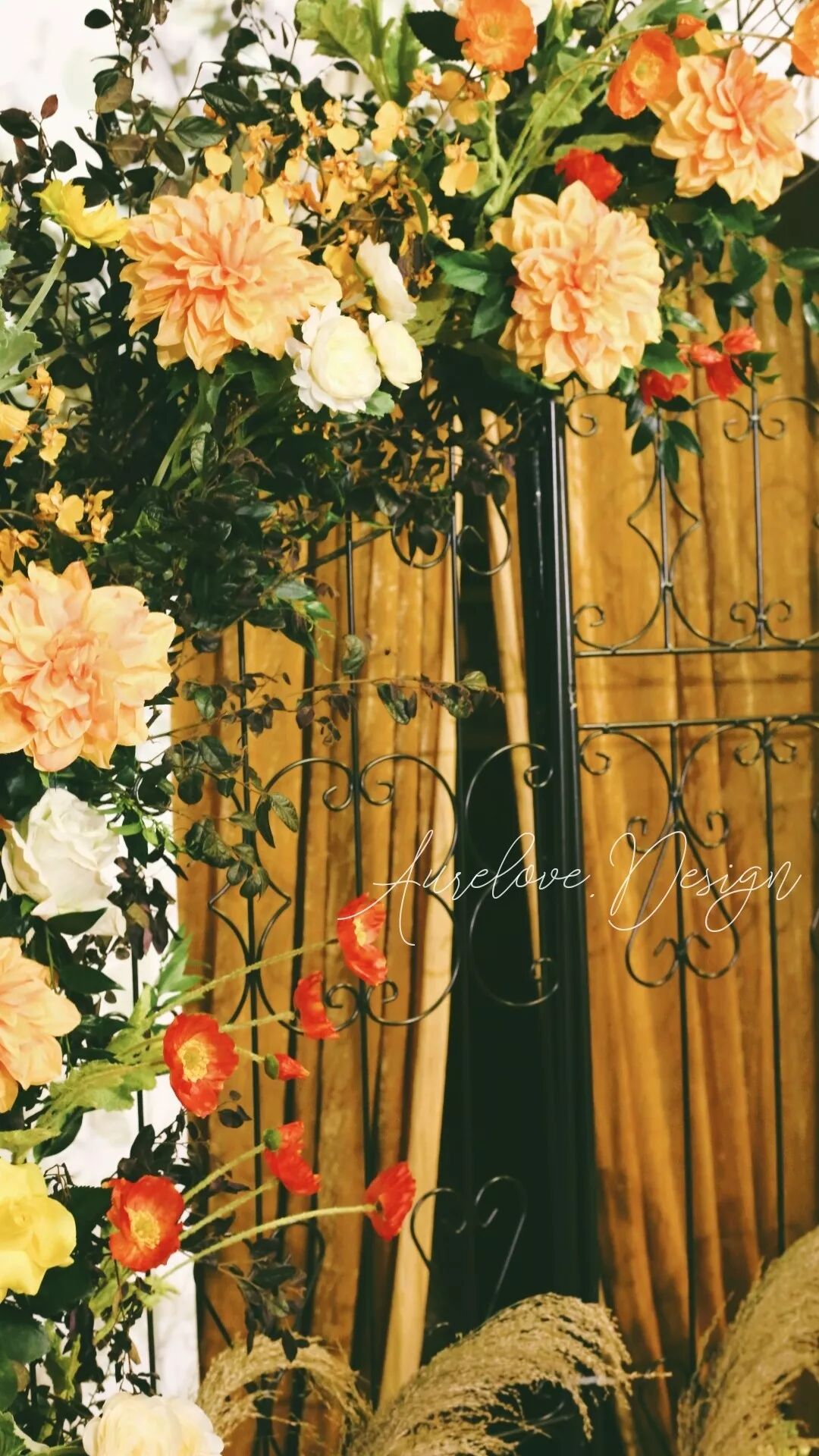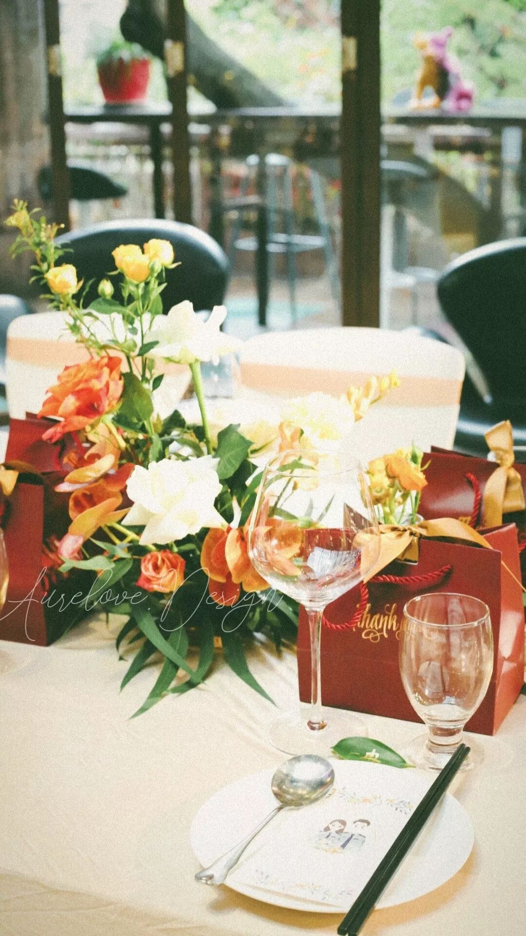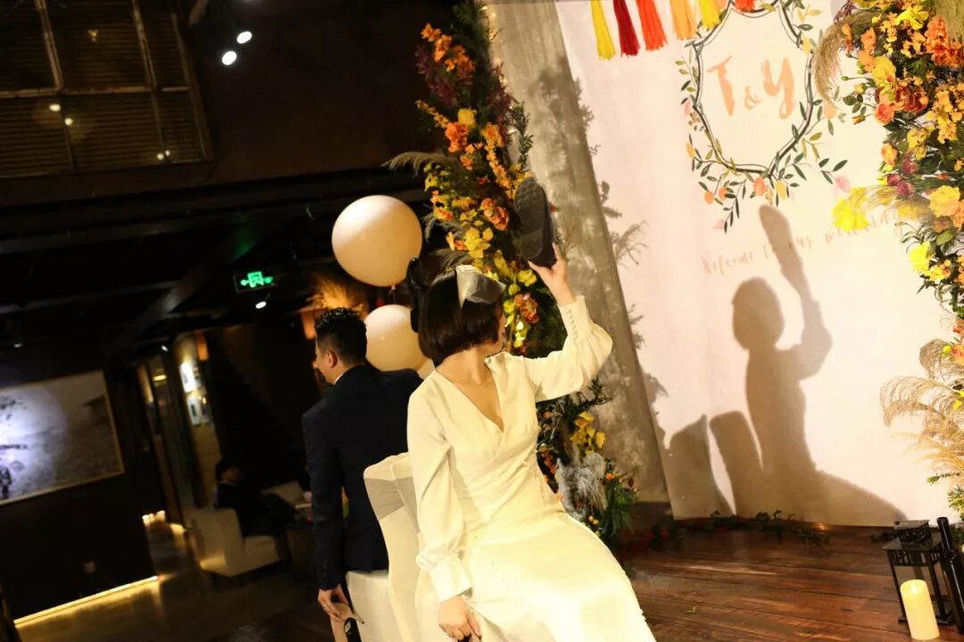 婚礼的风格是秋天的色调,象征秋色的枫叶、银杏叶、芦苇草等这些元素是必不可少的。黄色、橘色、橙色、红色都是婚礼的重要角色。