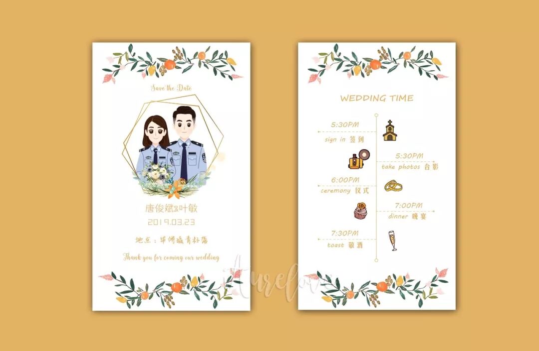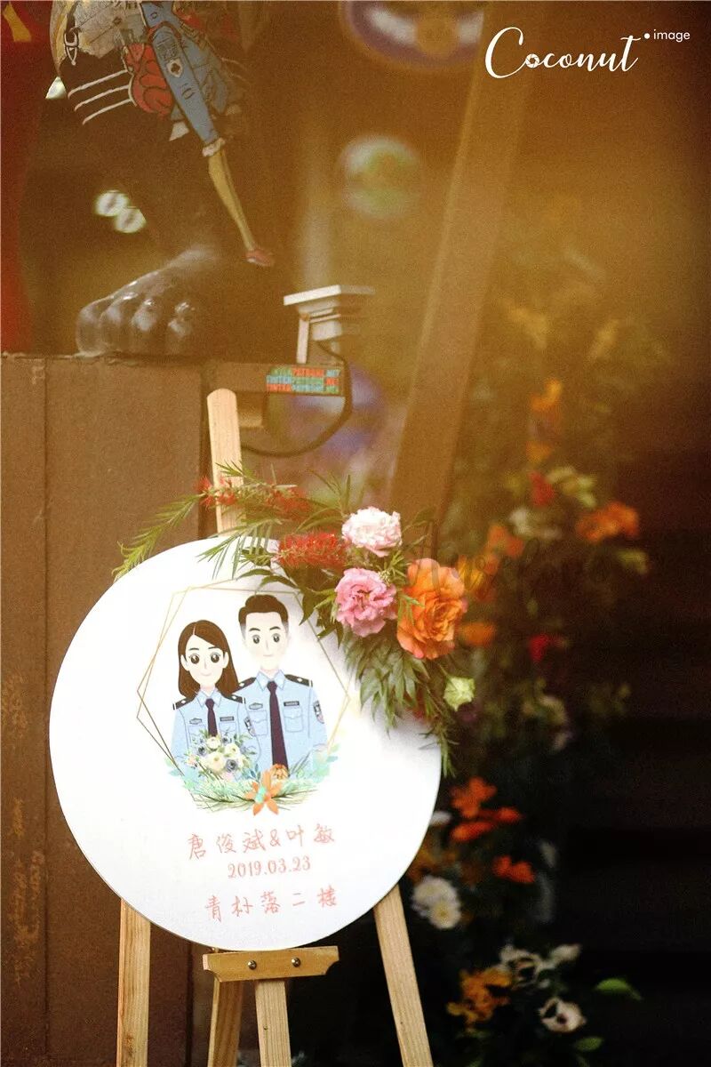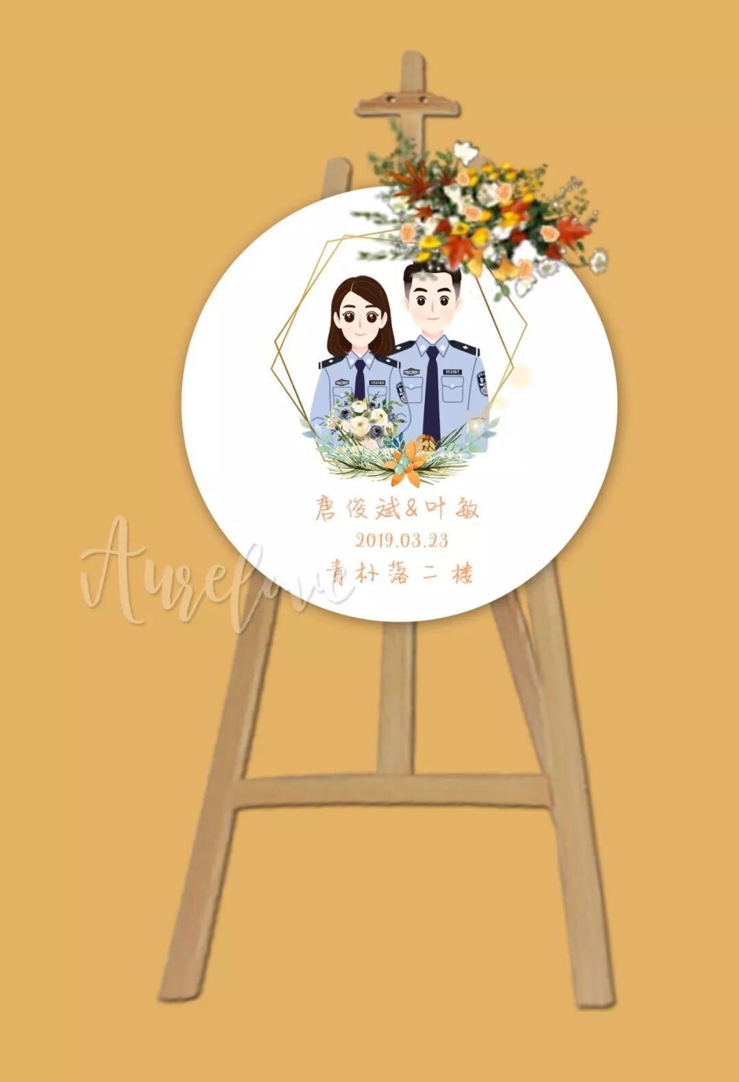 用婚礼手绘头像做的婚礼主题的迎宾架,在婚礼入口就清晰知道是我们警察夫妻的婚礼就在这里了^^。