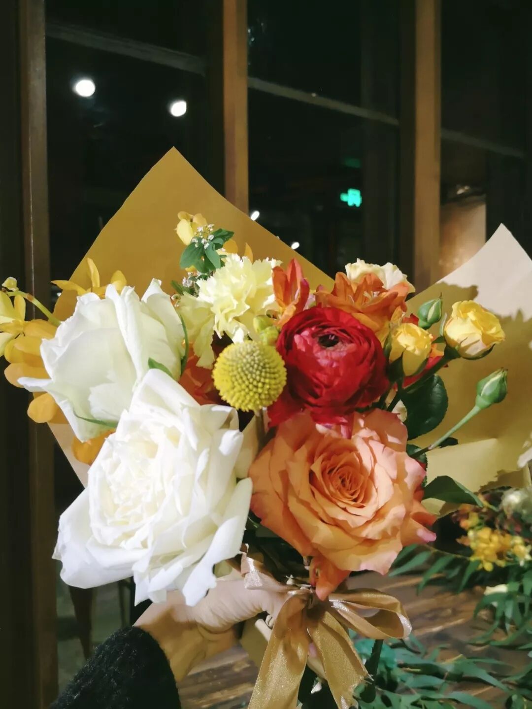 每一场婚礼都会和新人叮嘱:婚礼结束后,可以尽情拿走婚礼的鲜切花,最好也让来宾都带走一些鲜切花,当是婚礼的祝福,不要浪费掉了。这一次,带上了牛皮纸包装纸,为挑好鲜切花的来宾,把挑好的鲜切花包扎好成一束花束让她们好带走,就像被人送了一束花一样的美好,就像婚礼的祝福一样美好地带走。婚礼结束后来宾带走一束束花束,又是一道美美的风景线。