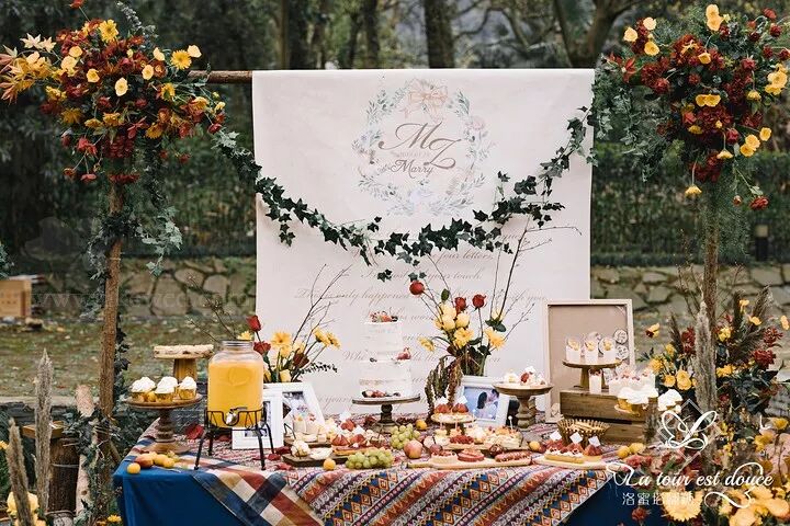 过分精致的甜品台,总会给人一种敬而远之的高冷感。尤其是那种翻糖蛋糕,光有颜值没有口感,对于宾客来说体验感一点都不好。