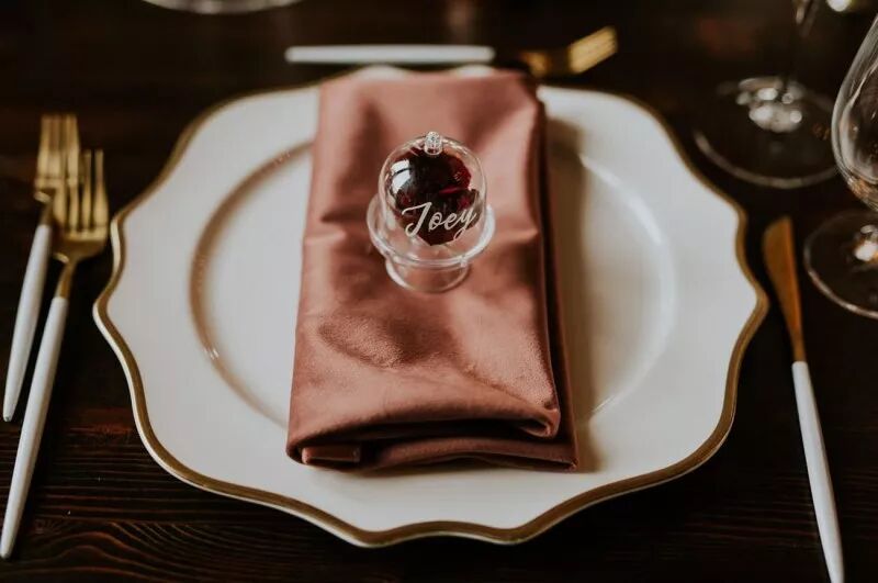 如果预算充足,还可以为宾客定制的餐桌座位卡,这种专属细节会让他们感受到自己是被受重视的,po图分享的兴趣也会大增。