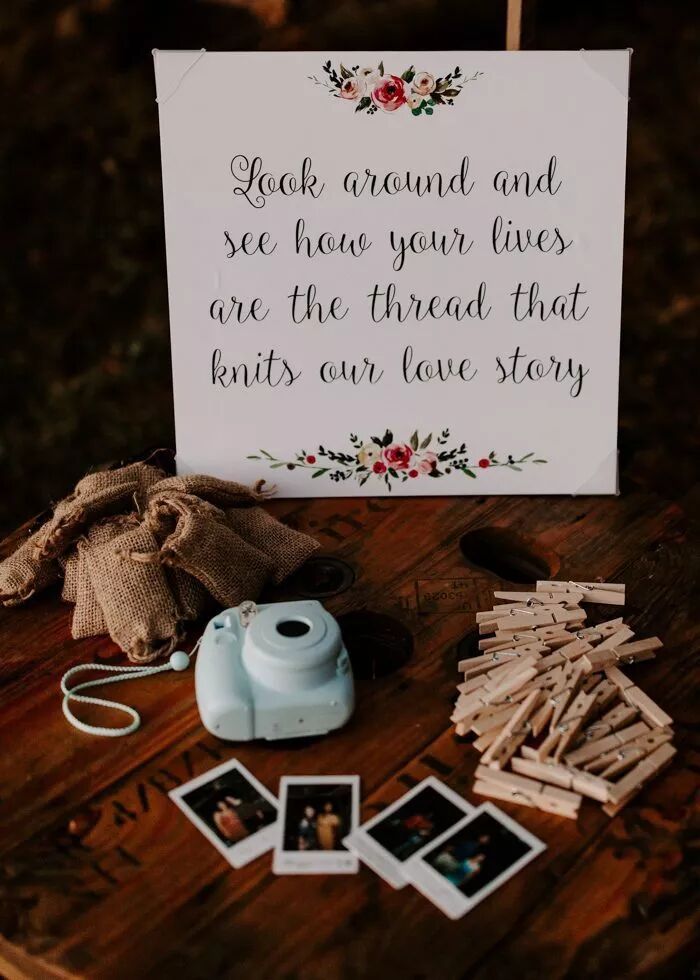 还有就是准备1部拍立得和足够的相纸,保证十几秒就出片儿啦!拿到照片还可以发挥想象,让宾客写上对新人的祝福或者创意涂鸦。