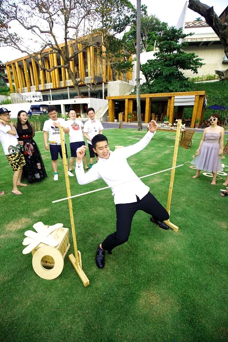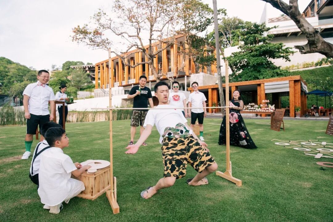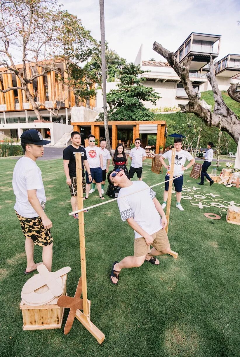 一个十分考验柔软度的游戏,而且很容易抓拍到搞笑片段。将宾客分为两组进行1v1比赛,绳子的高度依次递减,看谁的身体先触碰到绳子。