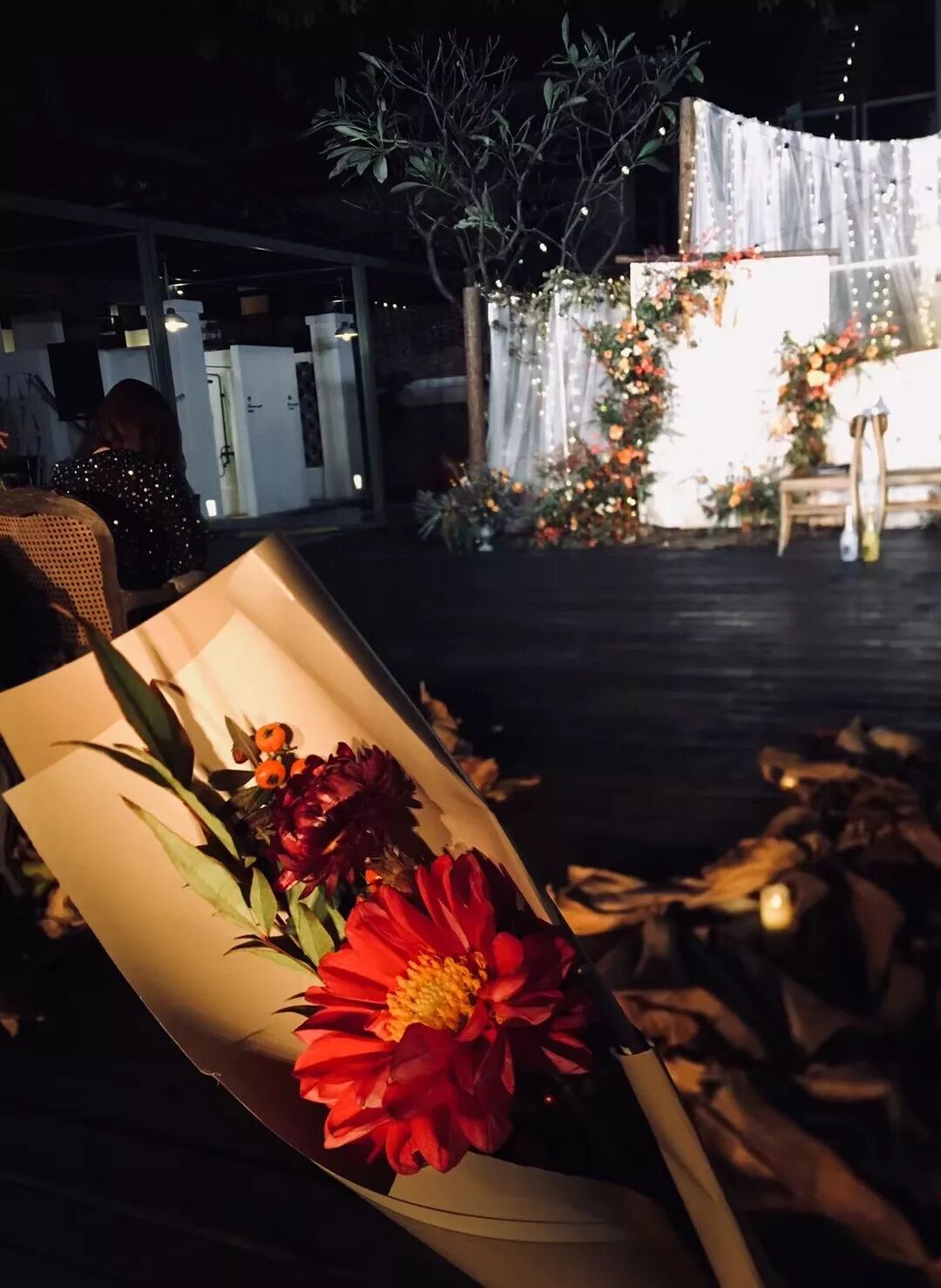 不如请人帮你将鲜花拆好并制作成简单的花束,用牛皮纸或者花篮包好,附上一封手写的感谢信,与回礼一同送给宾客。