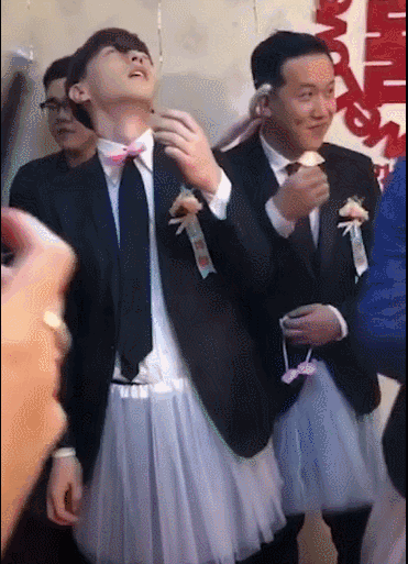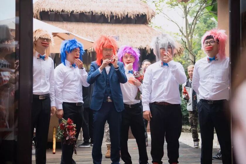 或者,你的装扮不够隆重,还会被伴娘们威逼利诱,穿上放飞自我的服饰!