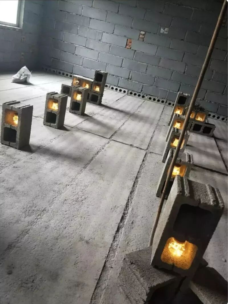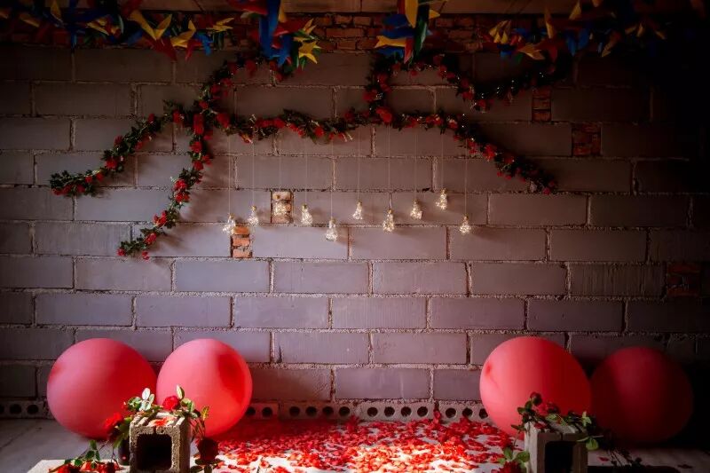 这些空心砖,一块得有10多斤沉吧,都是先生和亲朋好友们一块一块地搬运上来;现场的花束,装饰灯泡等物件,也是自己从淘宝上淘来的。
