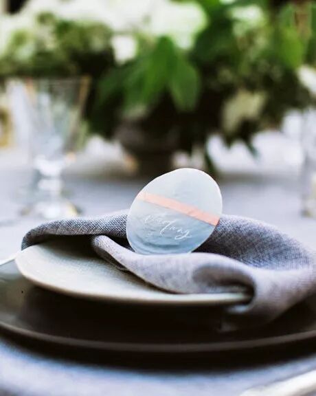 “尝试将现代'曲折'融入永恒经典中。例如,一个位置设置包含许多微小的元素,如餐巾纸和地方卡片。注意,不是用直线折叠餐巾纸哦,给它一个简单的扭曲,为了一种清新而又经典的现代感觉。不要使用传统的纸质地毯卡,而应考虑使用不同的材料和纹理,如皮革,大理石或卡皮斯贝壳。
