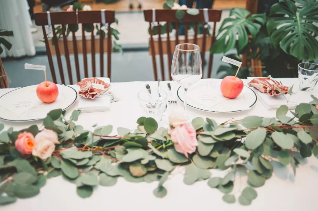▲via新娘Claire克莱尔,苹果上插着一面小旗子,一面写着:YOU ARE THE APPLE OF MY EYE,另一面写着宾客的名字。