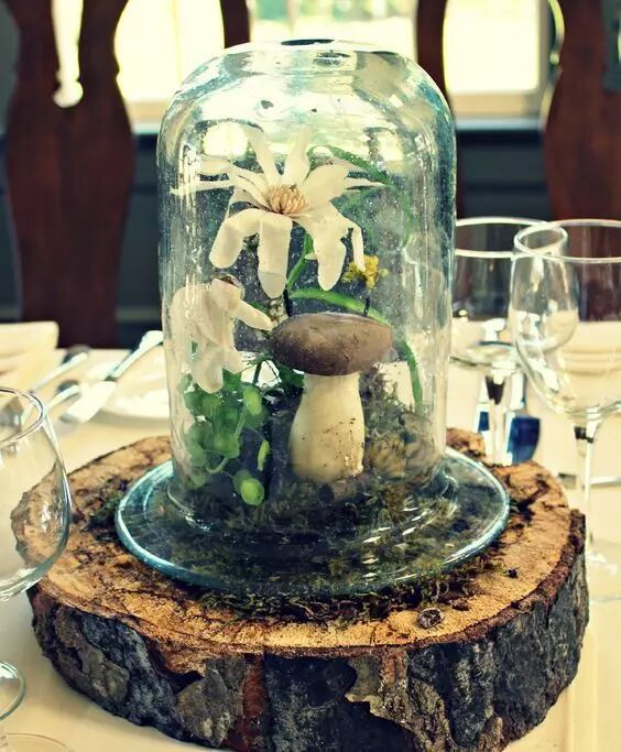 蘑菇运用到婚礼中时,最见到的地方就会绿意满满的森系婚礼啦,将整个婚礼现场布置构造出丛林的感觉,松鼠与鹿,林间散步,大朵大朵的蘑菇数不胜数。