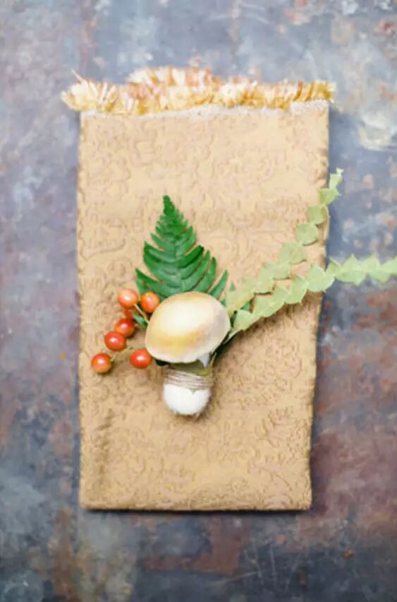 大把的蘑菇做为主角,仿佛置身于审理当中。草坪的婚礼,再加上这么一束蘑菇捧花,肯定让婚礼更加多彩。