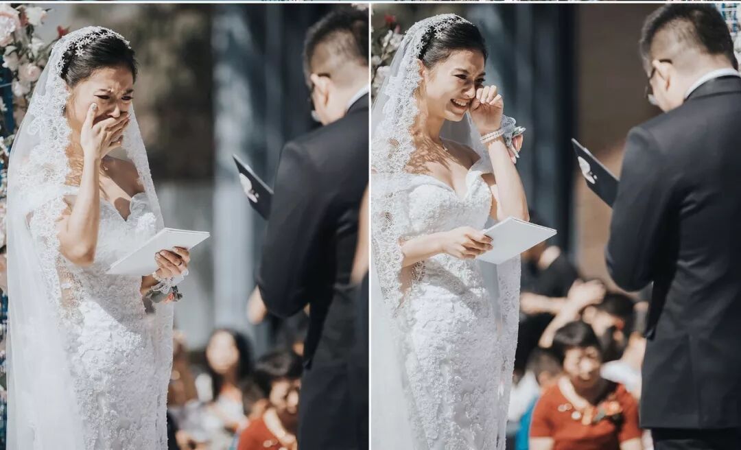 誓词环节要有饱满的情绪,但也不建议太激动,哭得太厉害会花妆表情会失控,没有情绪又会让人觉得尬。
